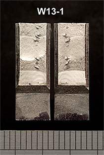 샘플이 파손되면 균열 표면을 검사하여 피로 균열이 합리적으로 직선 전면을 갖는지 확인합니다. 용접 조인트에 존재하는 잔류 응력으로 인해 피로 균열 전면이 불규칙해질 수 있습니다 - 이것이 과도하면 시험이 무효화 될 수 있습니다. 이 문제를 극복하기 위해 시험편은 잔류 응력을 재분배하기 위해 가공된 노치 팁에서 국부적으로 압축될 수 있습니다.